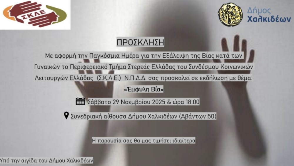 σας προσκαλεί σε εκδήλωση με θέμα: «Έμφυλη Βία»